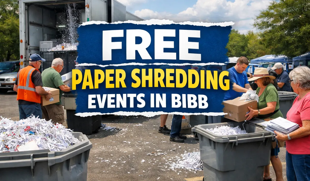 As identity theft, data breaches, and paper-based fraud continue to increase, Free Paper Shredding Events in Bibb are becoming more and more significant. To securely get rid of important papers without having to pay expensive commercial shredding costs, both locals and companies look for Free Paper Shredding Events in Bibb Today, Free Paper Shredding Events